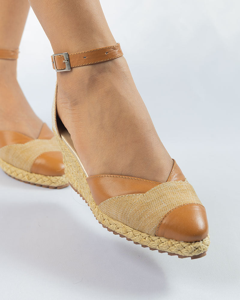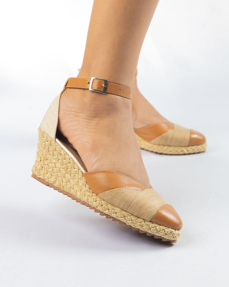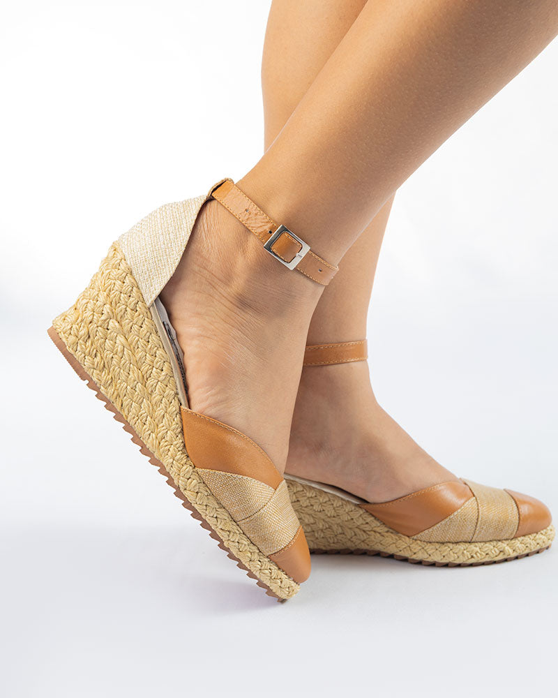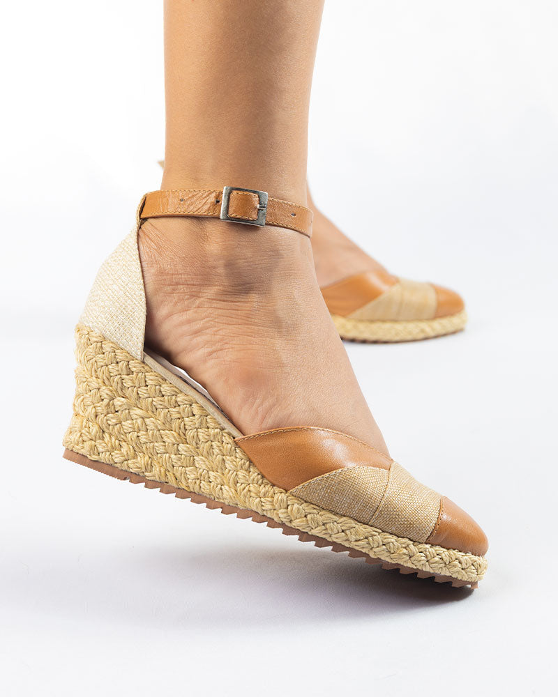 Zapatos elaborados en cuero color avellanda y yute, altura playa de 5.5cm forrada en yute, suela antideslizante, correita en cuero.